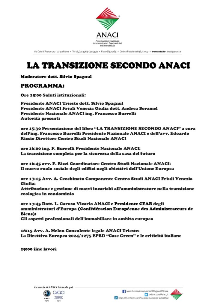 TRIESTE – CONVEGNO REGIONALE ANACI, 7 febbraio 2025