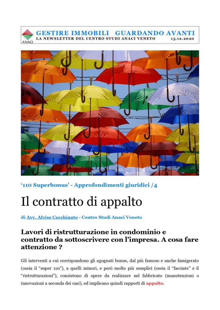 Gli interventi a cui corrispondono gli agognati bonus, dal più famoso e anche famigerato (ossia il “super 110”), a quelli minori, e però molto più semplici (ossia il “facciate” e il “ristrutturazioni”), consistono di opere da realizzare nel fabbricato (manutenzioni o innovazioni a seconda dei casi), ed implicano quindi rapporti di appalto.