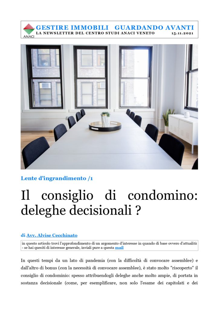 In questi tempi da un lato di pandemia (con la difficoltà di convocare assemblee) e dall’altro di bonus (con la necessità di convocare assemblee), è stato molto “riscoperto” il consiglio di condominio: spesso attribuendogli deleghe anche molto ampie, di portata in sostanza decisionale (come, per esemplificare, non solo l’esame dei capitolati e dei preventivi, ma anche la scelta di lavorazioni, e addirittura dell’impresa).