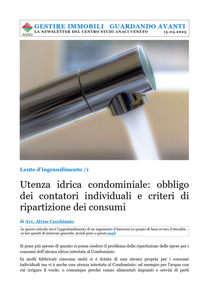 Utenza idrica condominiale: obbligo dei contatori individuali e criteri di ripartizione dei consumi